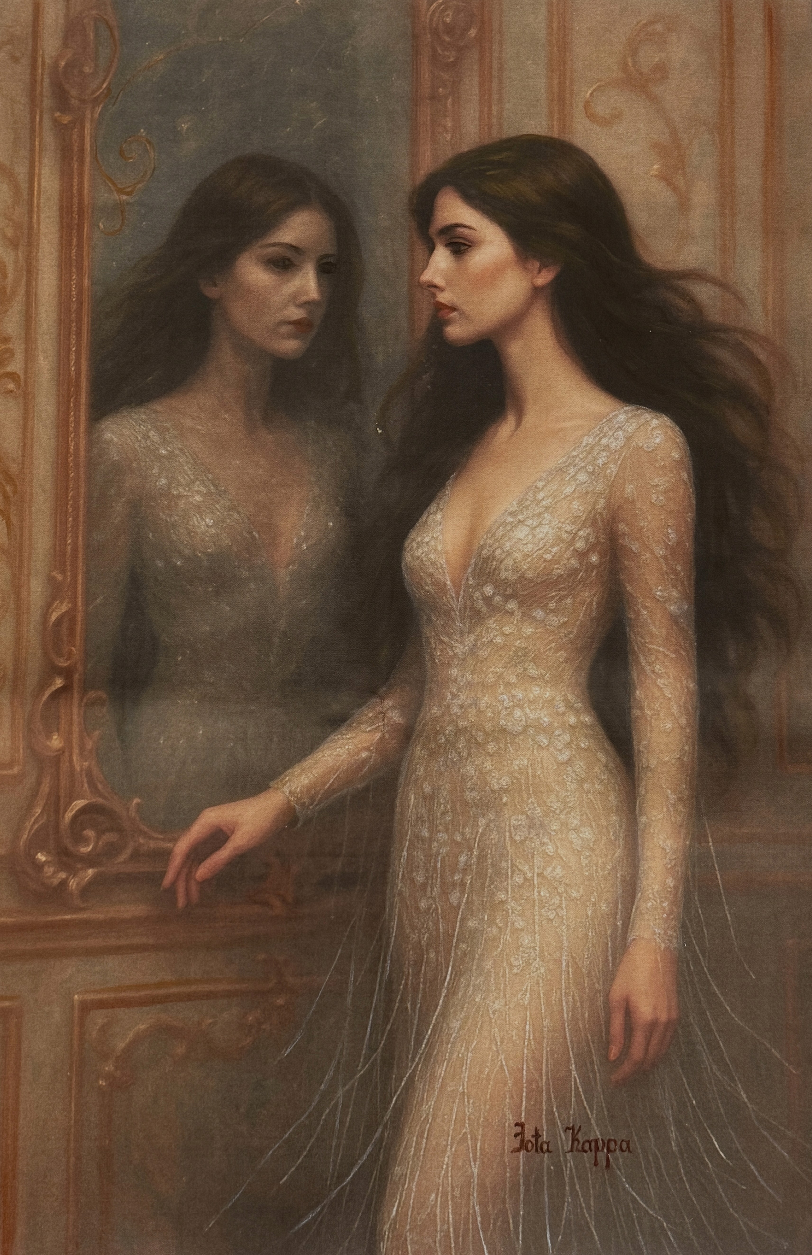"Speculum Veritatis" transcends portraiture to explore the tension between perception and essence, identity and projection in relationships. At its heart, this painting honors the raw courage required to confront the authentic relationships. Not every mirror tells the truth. But this one holds the possibility of liberation. It is not a mirror that defines, but one that invites recognition.